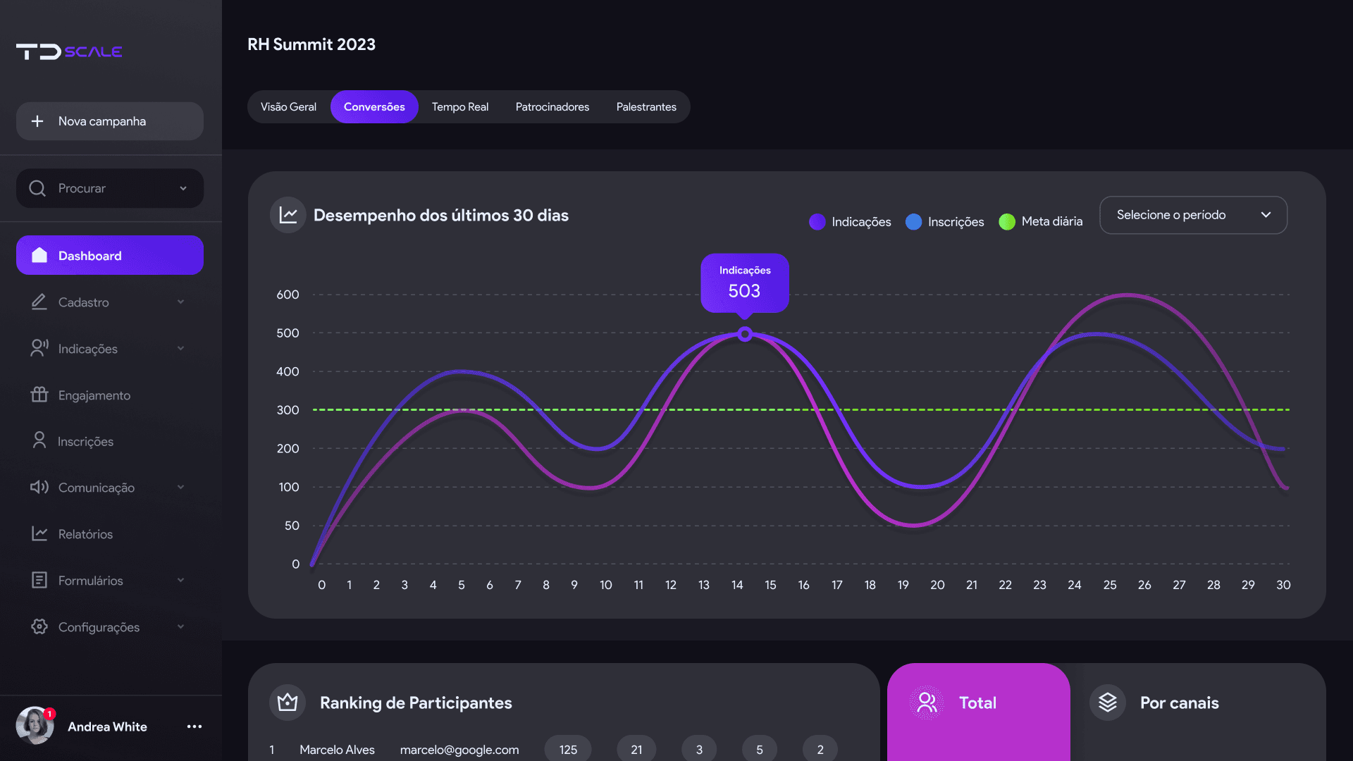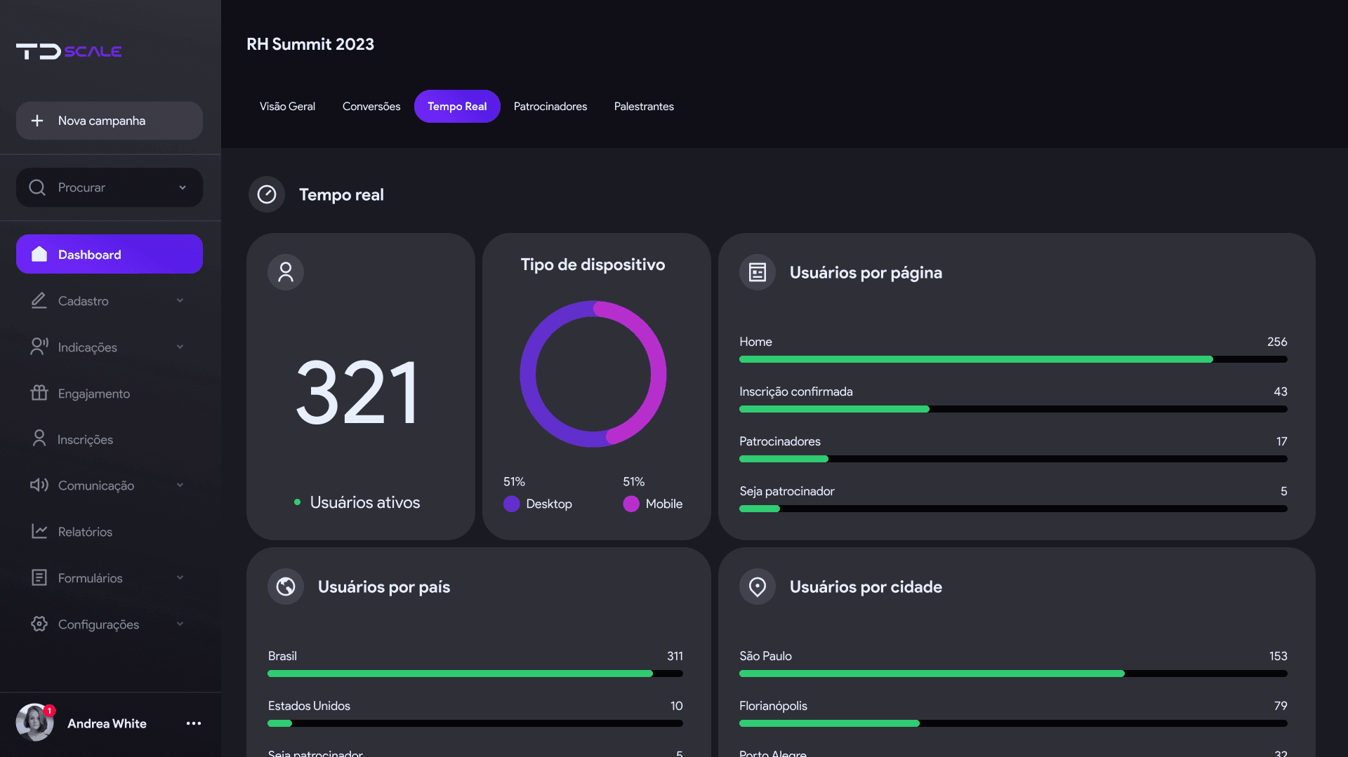 “A plataforma nos ajudou a trazer 37% dos inscritos com o módulo de indicação, alavancando a audiência do evento. A plataforma do TD nos proporcionou uma solução integrada, fácil de acessar e com dezenas de ativações.”