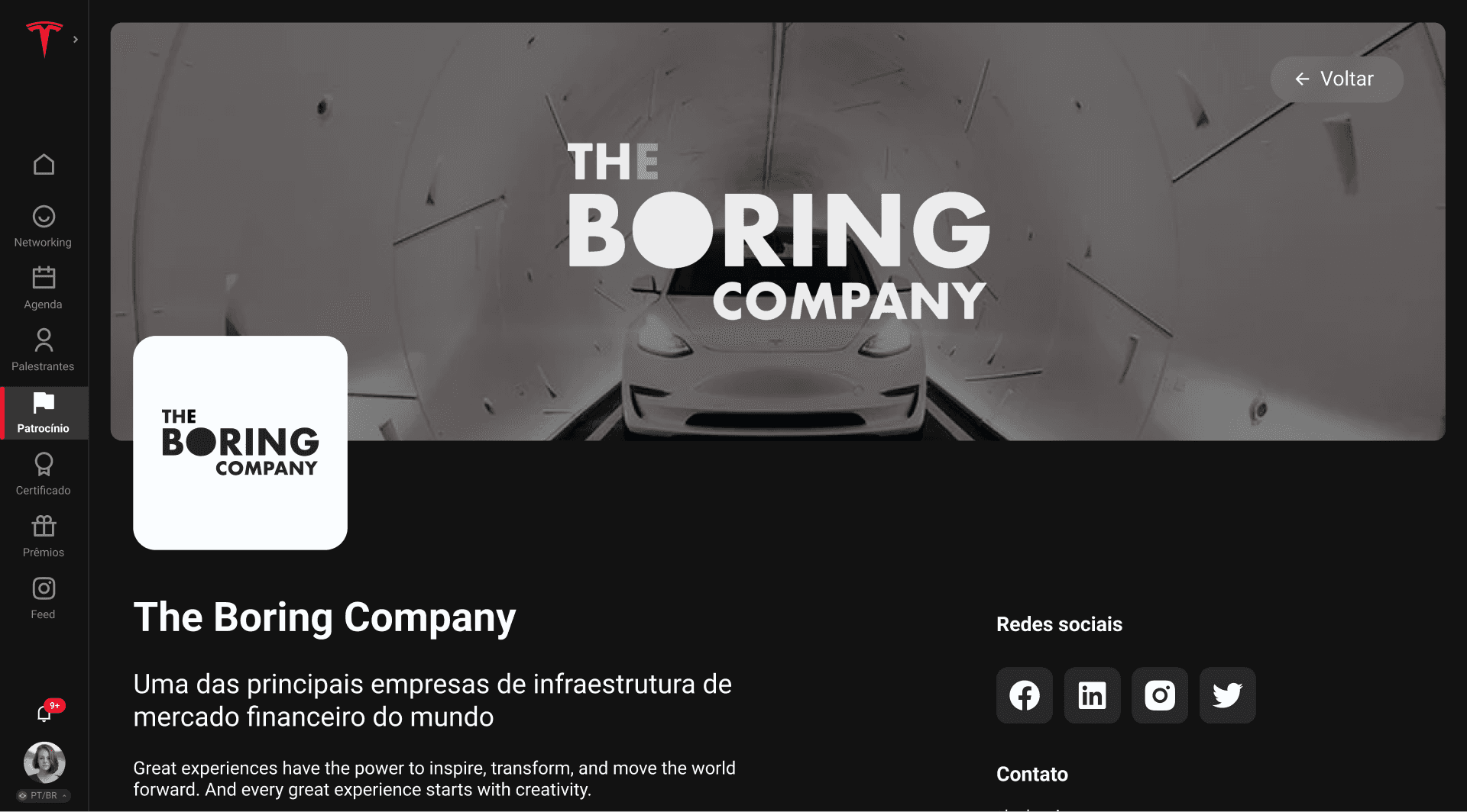 Company pages, CTAs, banners e várias outras formas de expor seu patrocinador no evento.