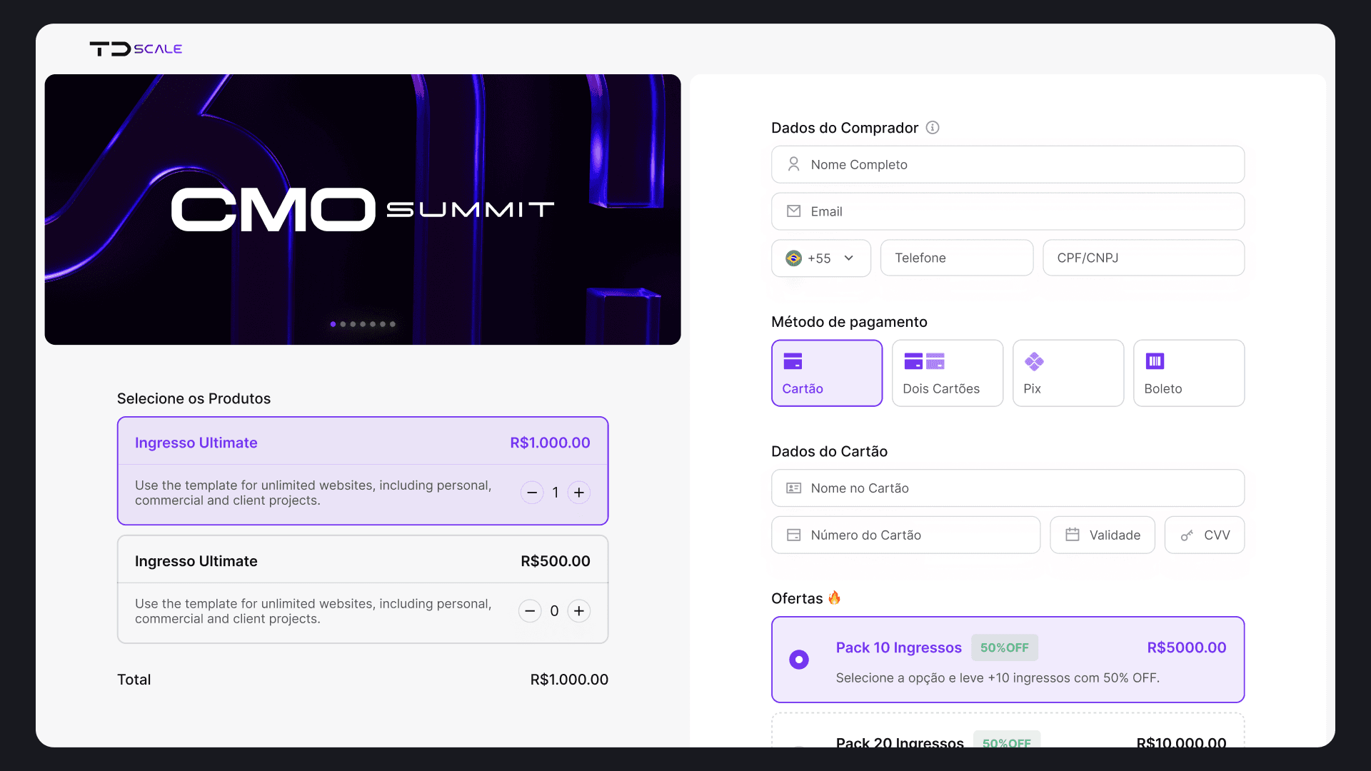 Templates testados nos próprios eventos do TD. Design exclusivo e conversão garantida.